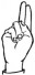 На ћирилици написано ЋИЛЕ БРЕСНОПОЉАЦ састоји се из 15 слова [?]. Исписано ћириличном једноручном азбуком за глувонеме: